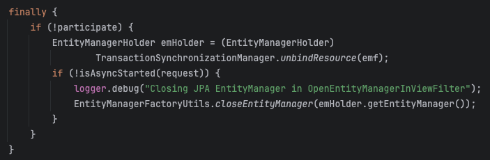 렌더링이 완료되면 EntityManager를 닫습니다.